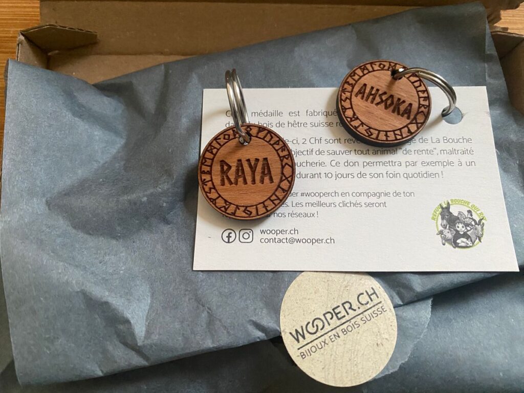 Chez Wooper, nous sommes artisans-créateurs et nous fabriquons nos médailles en bois pour animaux dans notre atelier de production situé en Suisse (Valais). La matière première de ta médaille en bois personnalisée vient d’une menuiserie locale.