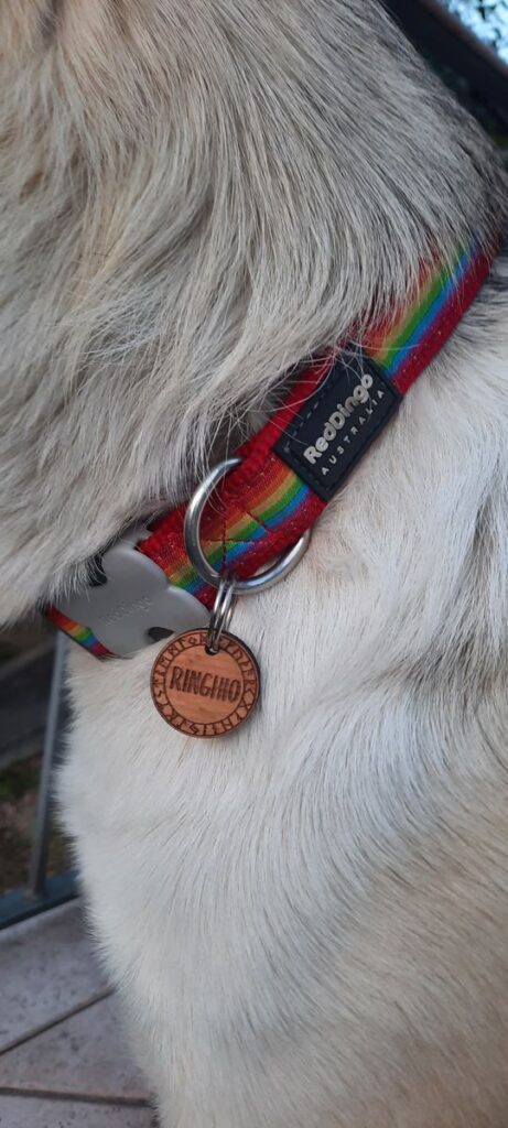 Il serait peut-être top de mettre un anneau plus solide ou épais car les deux parties métalliques s’écartent trop facilement. J’ai déjà changé une fois sur l’ancienne médaille de Ducky mais malgré cela il l’a perdue une fois en balade (d’où ma nouvelle commande de médaille pour le même chien)
